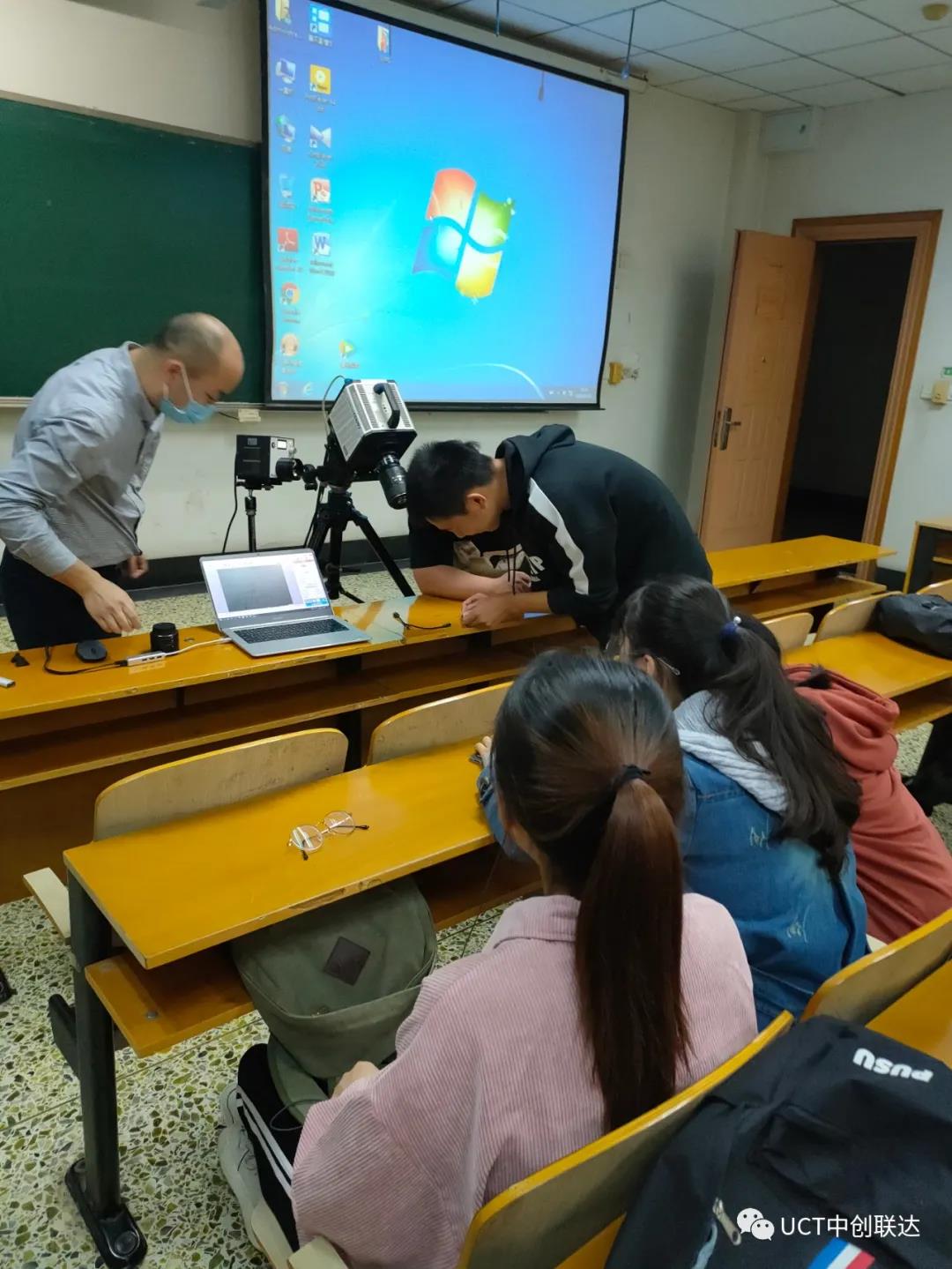 ? ? ?在本次課堂中,我公司的工程師對(duì)高速攝像機(jī)的原理、發(fā)展歷程及應(yīng)用范圍進(jìn)行了詳細(xì)的講解。工程師專業(yè)知識(shí)水平、詼諧活躍的課堂氛圍,激發(fā)了學(xué)生對(duì)高速攝像機(jī)的興趣。受同學(xué)們的熱烈要求,我公司工程師還直接在本次課堂上進(jìn)行了一個(gè)高速小實(shí)驗(yàn)的拍攝演示。